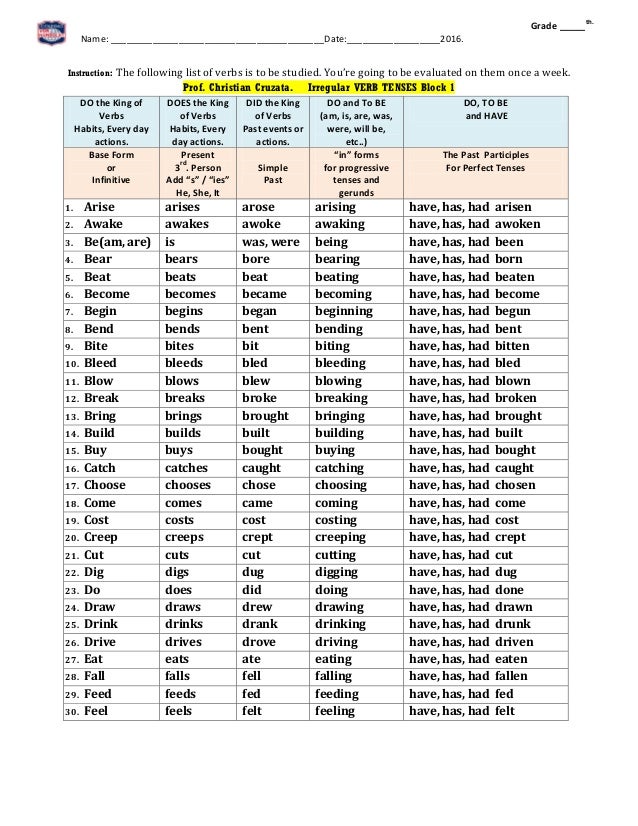 Irregular Verbs Education Com