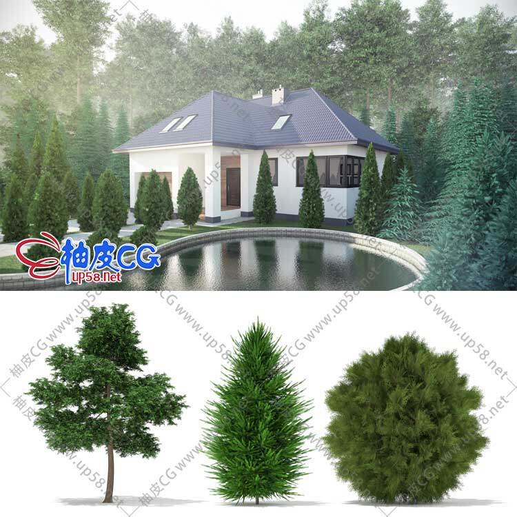 C4d Maya 3dsmax Vray室外园林设计雪松松柏针叶树云杉树木植物精细3d模型 柚皮cg资源网站