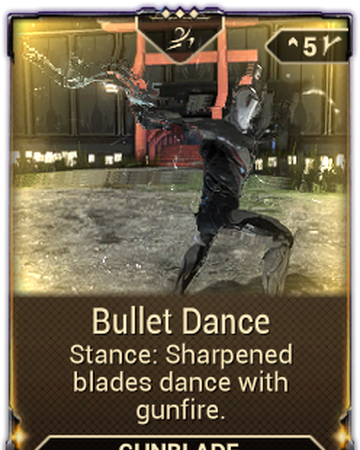 Bullet Dance is a stance mod for Gunblades. Press a button, move slower (jumping will allow you to move faster with Ivara, btw. Slash/Blast/Corrosive - High status + Condition Overload by THeMooN85, last updated on Jul 9, 19.